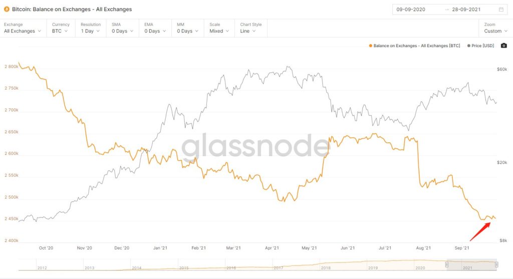 Figure 3: The exchange balance continues to below, the market supply is low and it is hard to have a big fall.