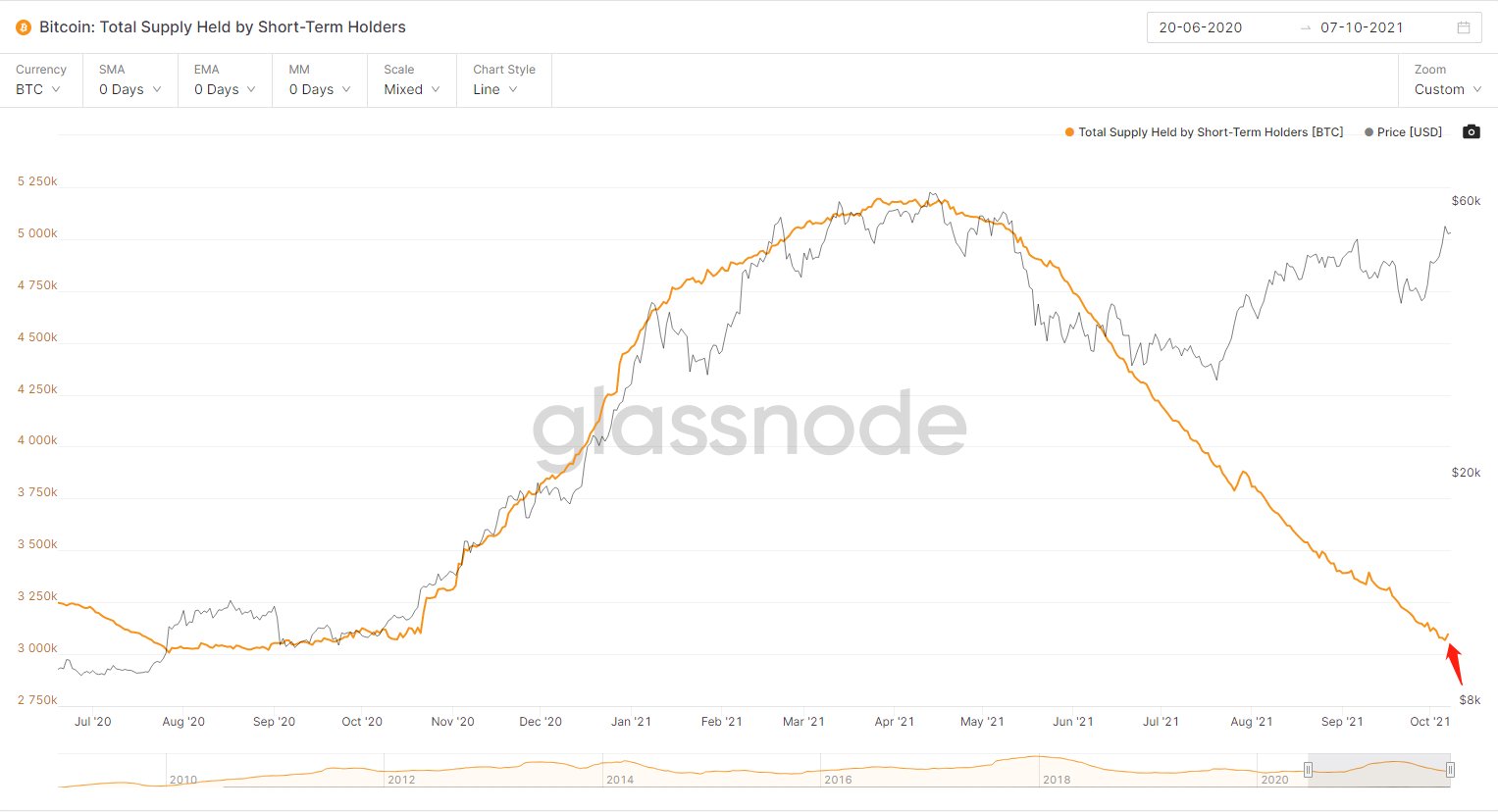 Figure 2 Short-term holders have raised their heads, coin price rise is expected to continue.